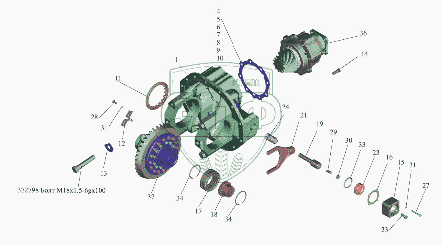 Каталог запасных частей к технике: МАЗ-437043 (Зубренок). Редуктор заднего моста