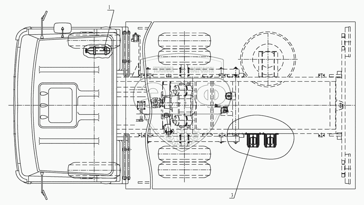 Каталог запасных частей к технике: МАЗ-437043 (Зубренок). Установка принадлежностей 4370-3900011