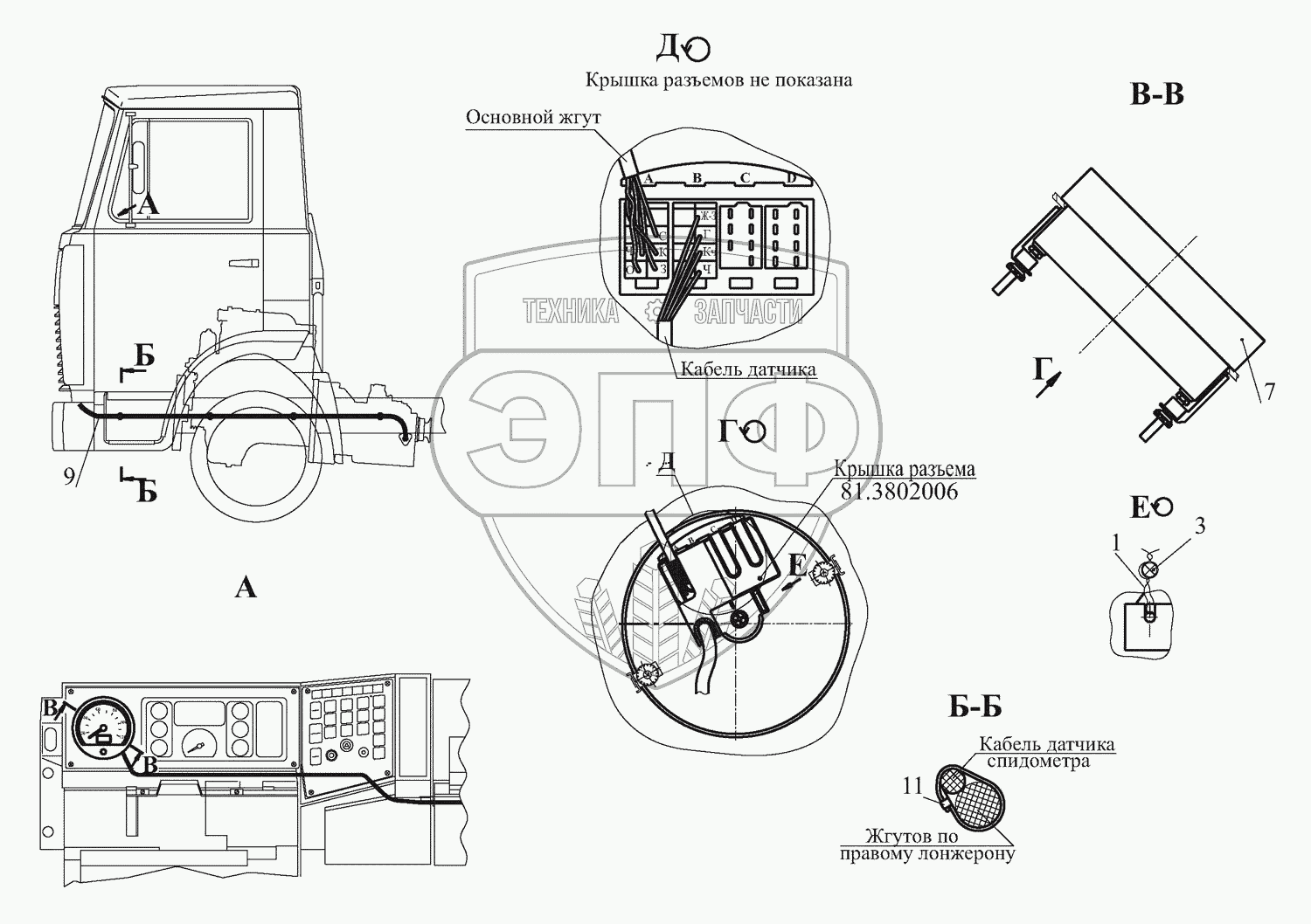 Каталог запасных частей к технике: МАЗ-437043 (Зубренок). Установка спидометра 437041-3800004