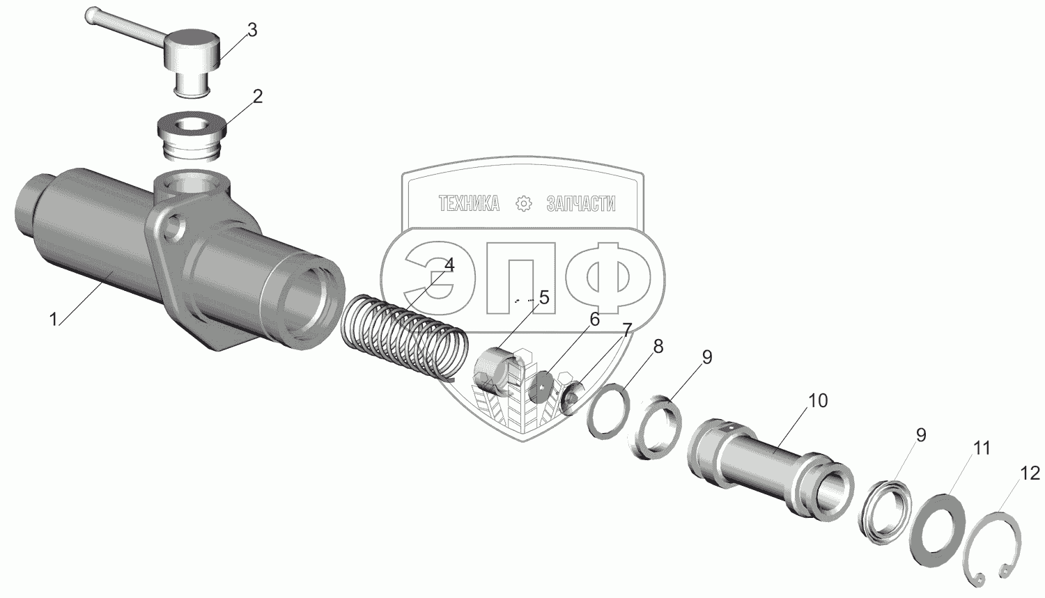 Каталог запасных частей к технике: МАЗ-437130 (Зубренок). Цилиндр подпедальный 6430-1602510