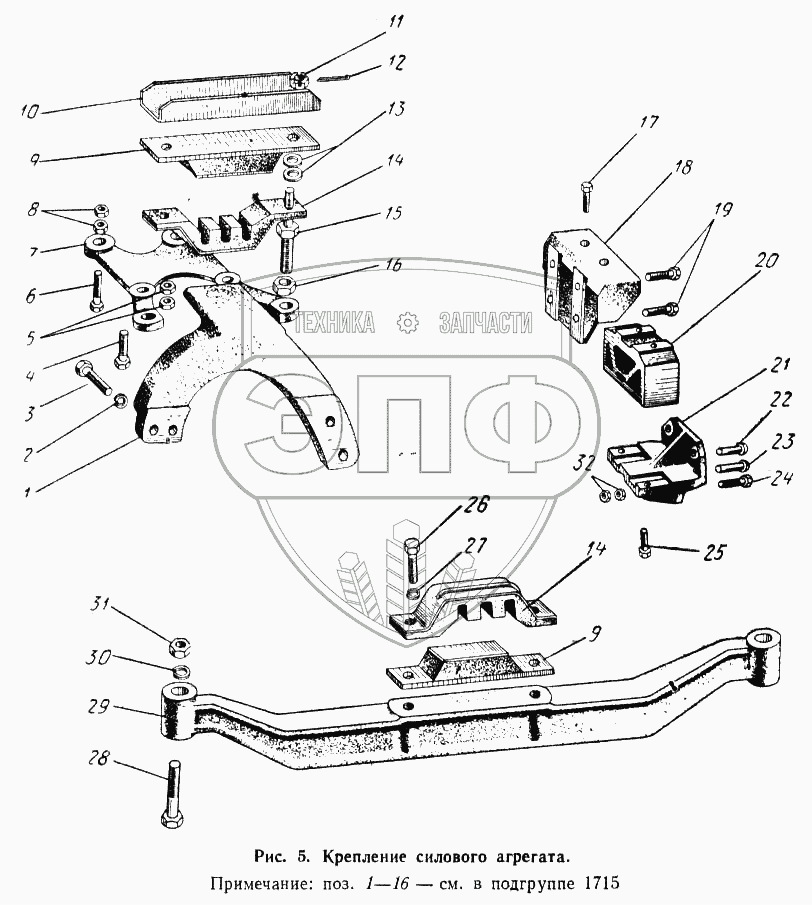 Каталог запасных частей к технике: МАЗ-503А. Крепление силового агрегата