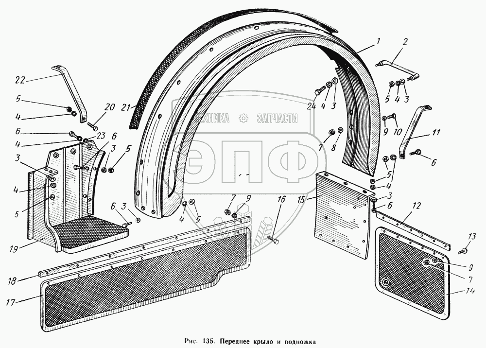Каталог запасных частей к технике: МАЗ-503А. Переднее крыло и подножка