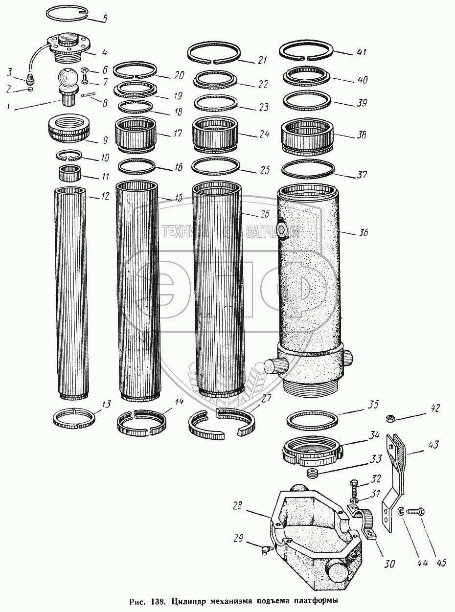 Каталог запасных частей к технике: МАЗ-503А. Цилиндр механизма подъема платформы
