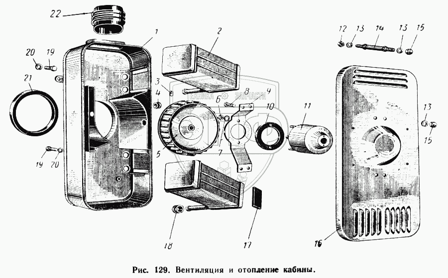 Каталог запасных частей к технике: МАЗ-503А. Вентиляция и отопление кабины