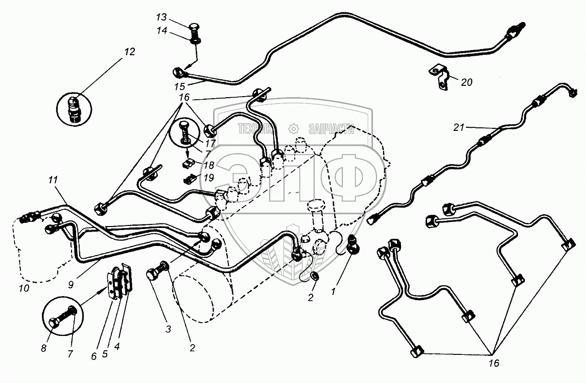 Каталог запасных частей к технике: МАЗ-504В. Топливные трубопроводы двигателя ЯМЗ-238