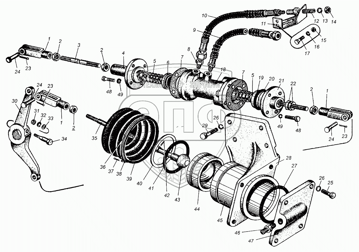 Каталог запасных частей к технике: МАЗ-504В. Усилитель выключения сцепления