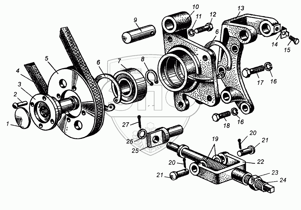 Каталог запасных частей к технике: МАЗ-504В. Устройство натяжное насоса