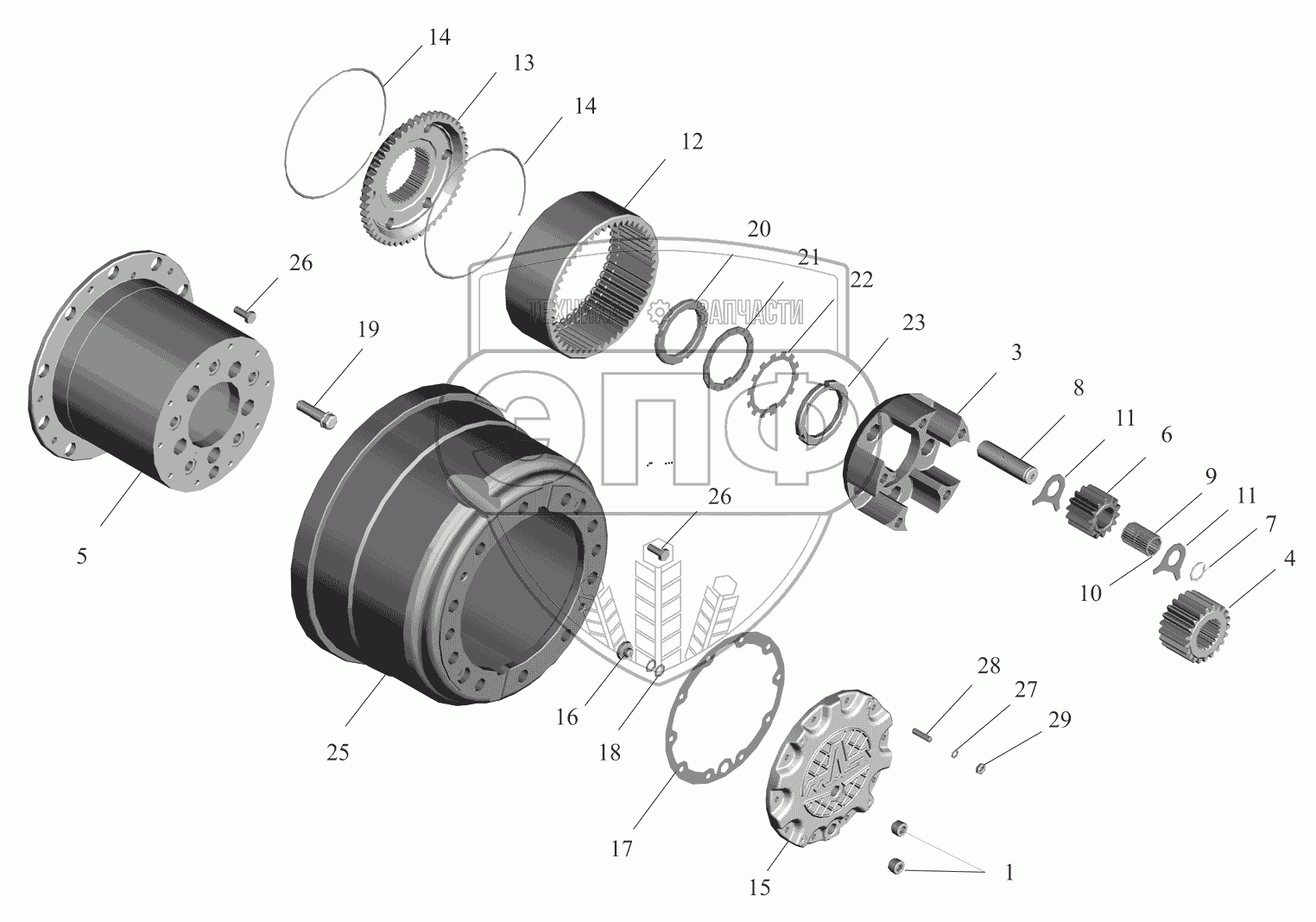 Каталог запасных частей к технике: МАЗ-530905. Колесный редуктор