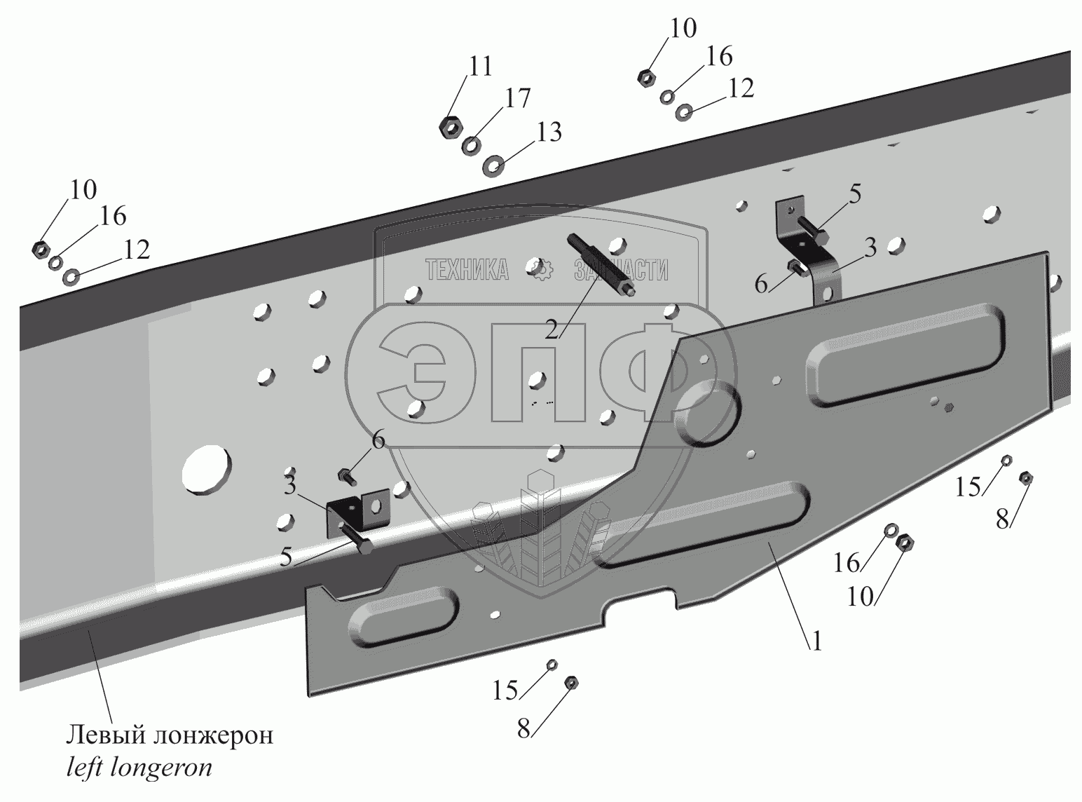 Каталог запасных частей к технике: МАЗ-530905. Крепление защитного экрана 641808-3506040