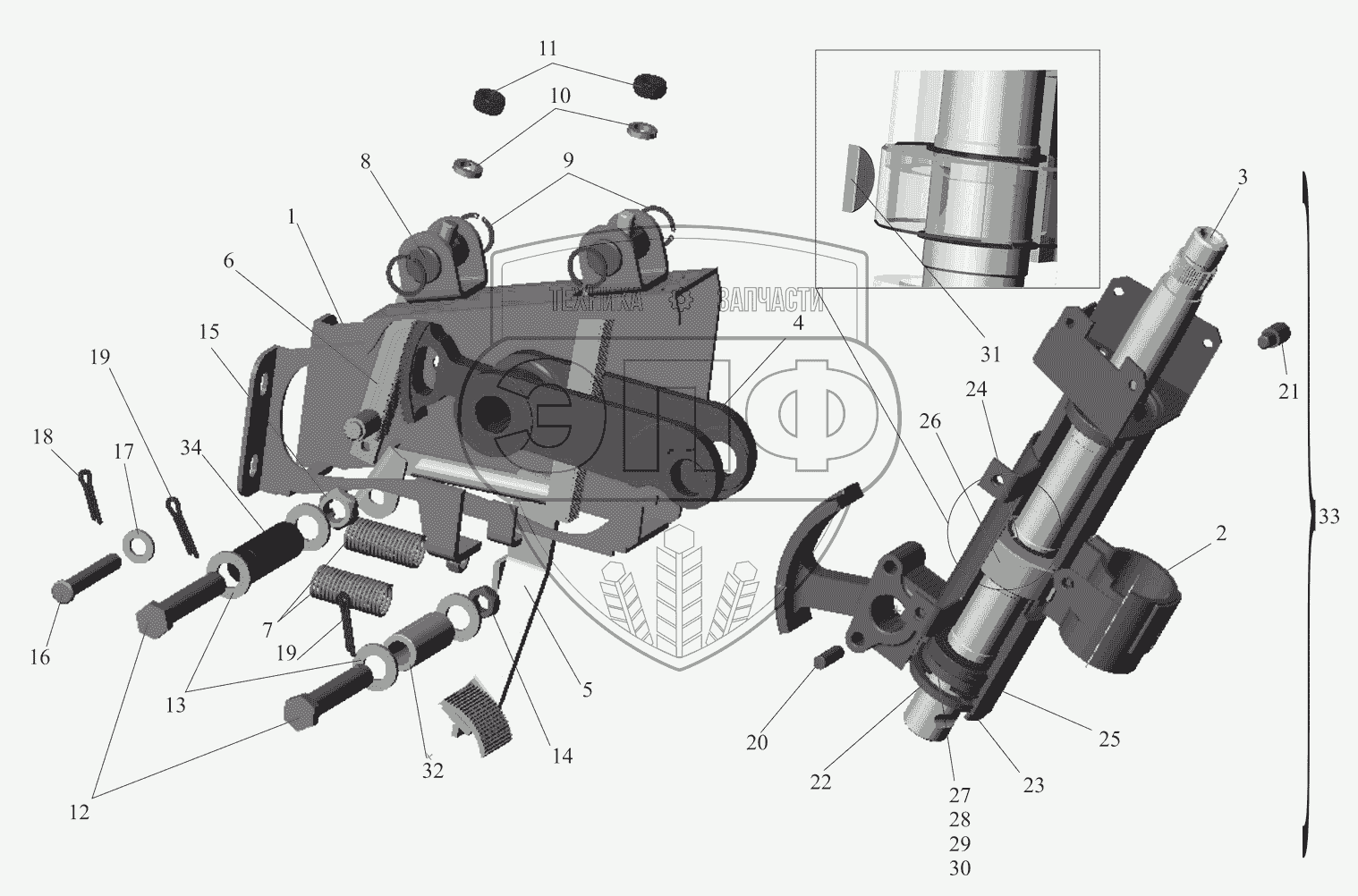 Каталог запасных частей к технике: МАЗ-530905. Кронштейн с колонкой 5440-3403008
