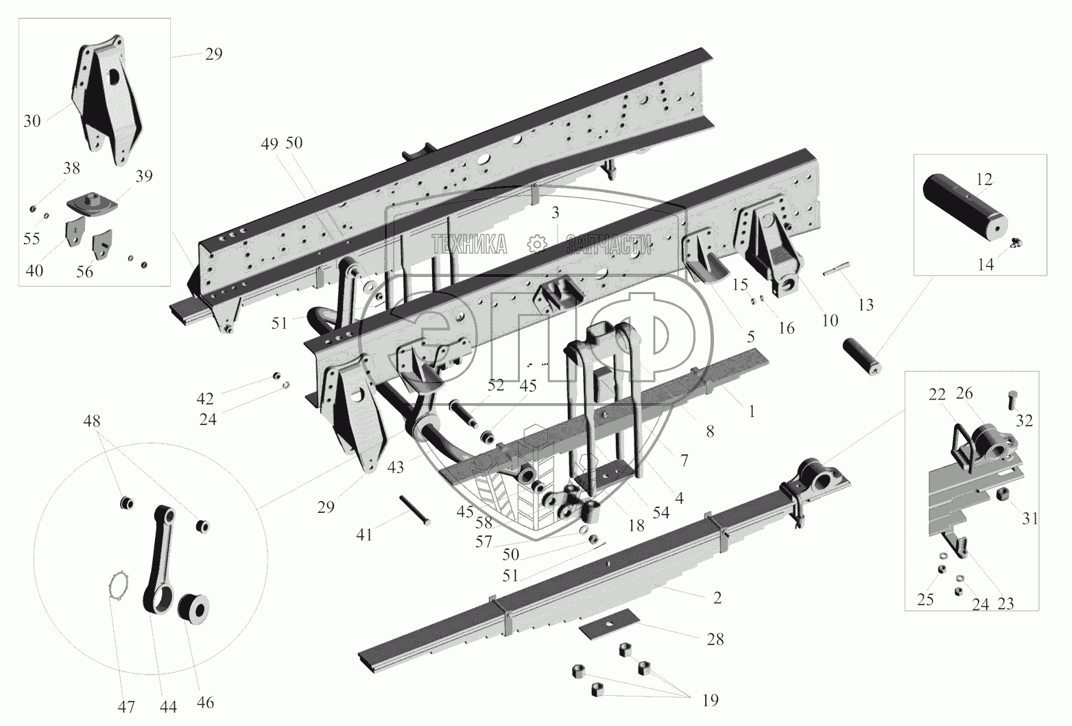 Каталог запасных частей к технике: МАЗ-530905. Подвеска задняя