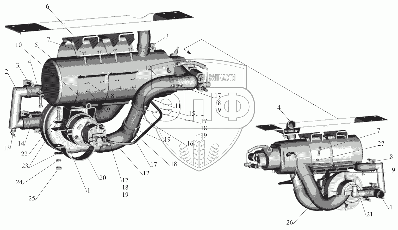 Каталог запасных частей к технике: МАЗ-530905. Предпусковой подогреватель 630208-1015006