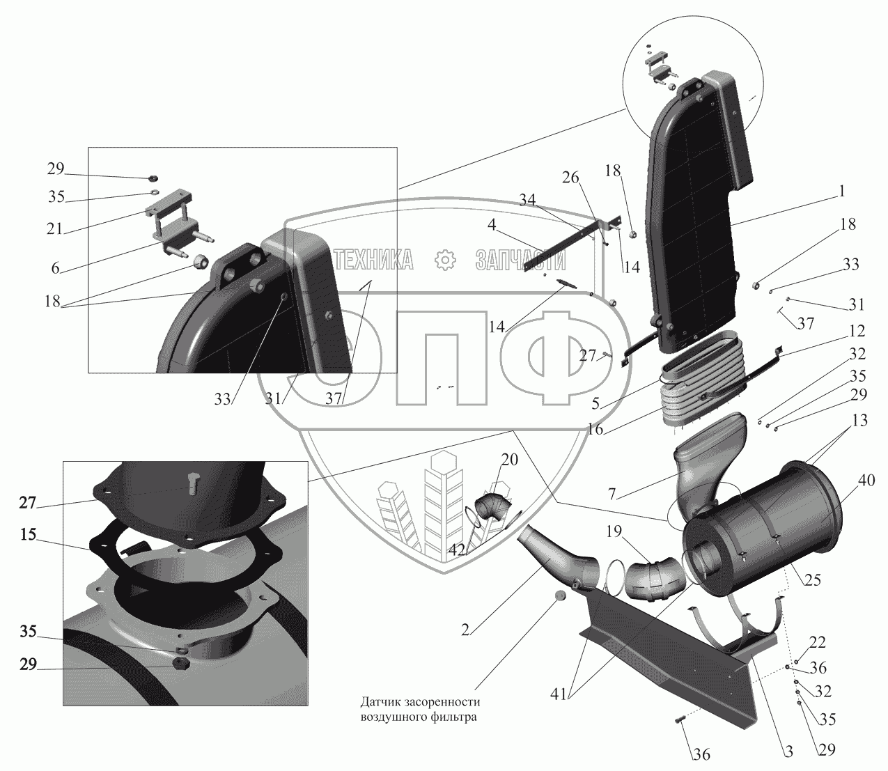 Каталог запасных частей к технике: МАЗ-530905. Система питания воздухом 641808-1109002