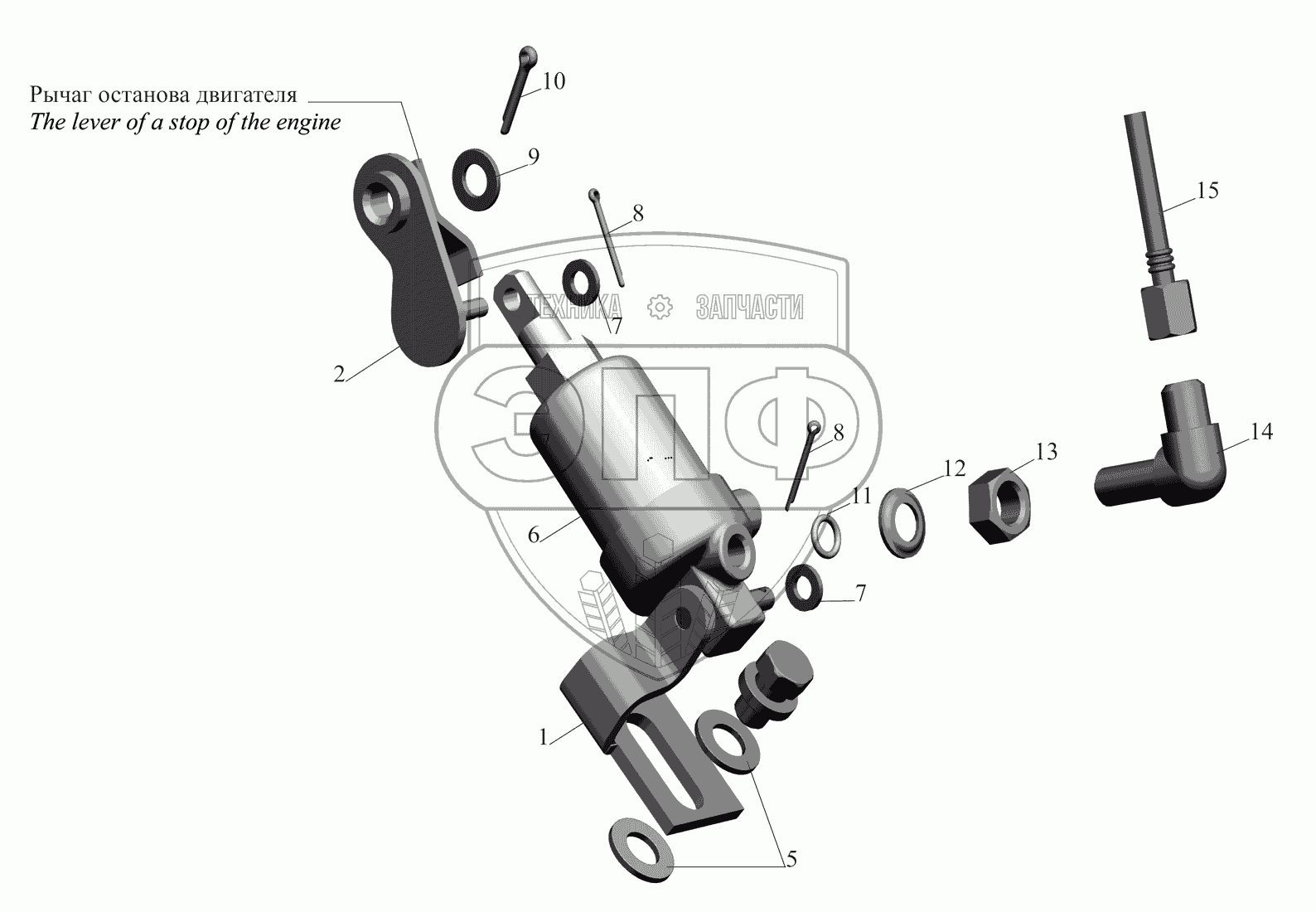 Каталог запасных частей к технике: МАЗ-530905. Цилиндр останова двигателя 642208-3570004