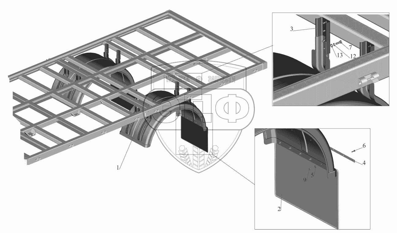Каталог запасных частей к технике: МАЗ-530905. Установка брызговиков 530905-8500048