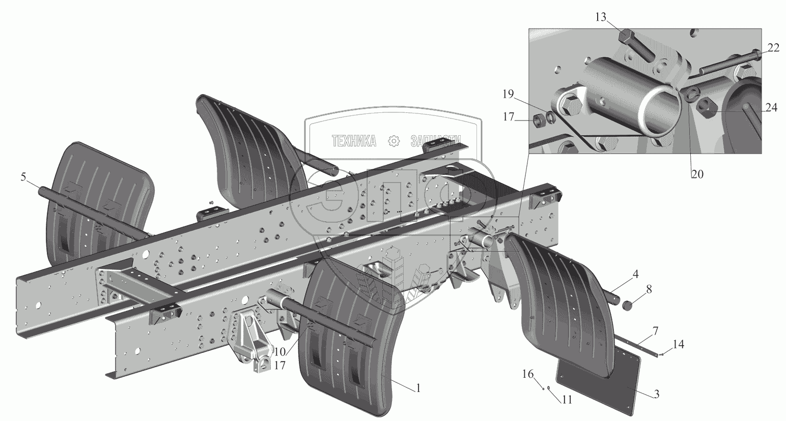 Каталог запасных частей к технике: МАЗ-530905. Установка крыльев 5309-8500048