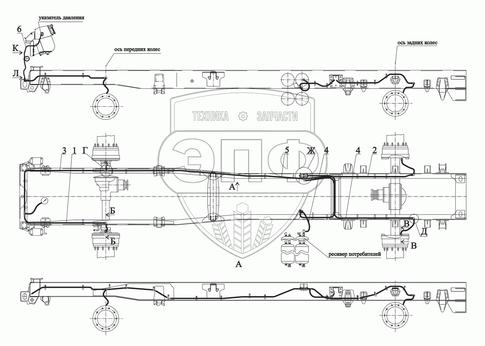 Каталог запасных частей к технике: МАЗ-530905. Установка накачки шин