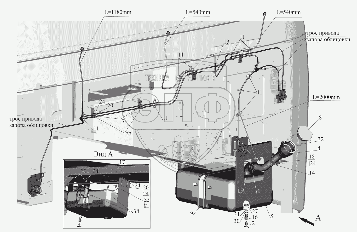 Каталог запасных частей к технике: МАЗ-530905. Установка омывателя 6430-5200008