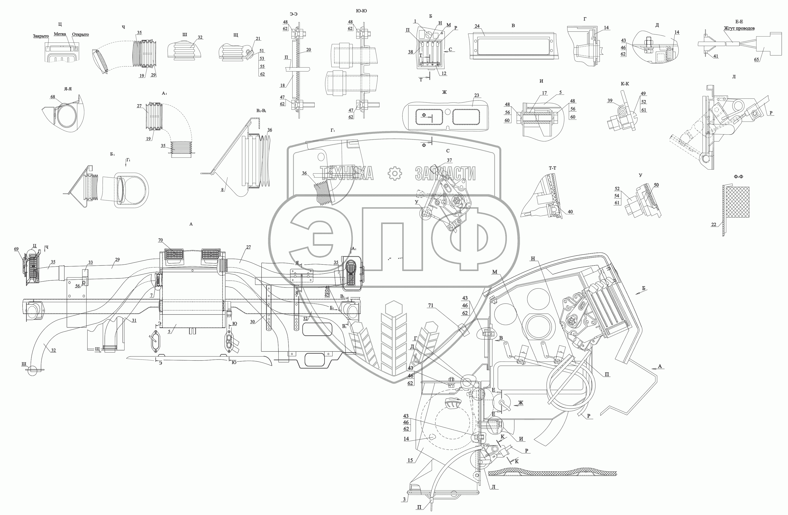 Каталог запасных частей к технике: МАЗ-530905. Установка отопителя 6430-8100001