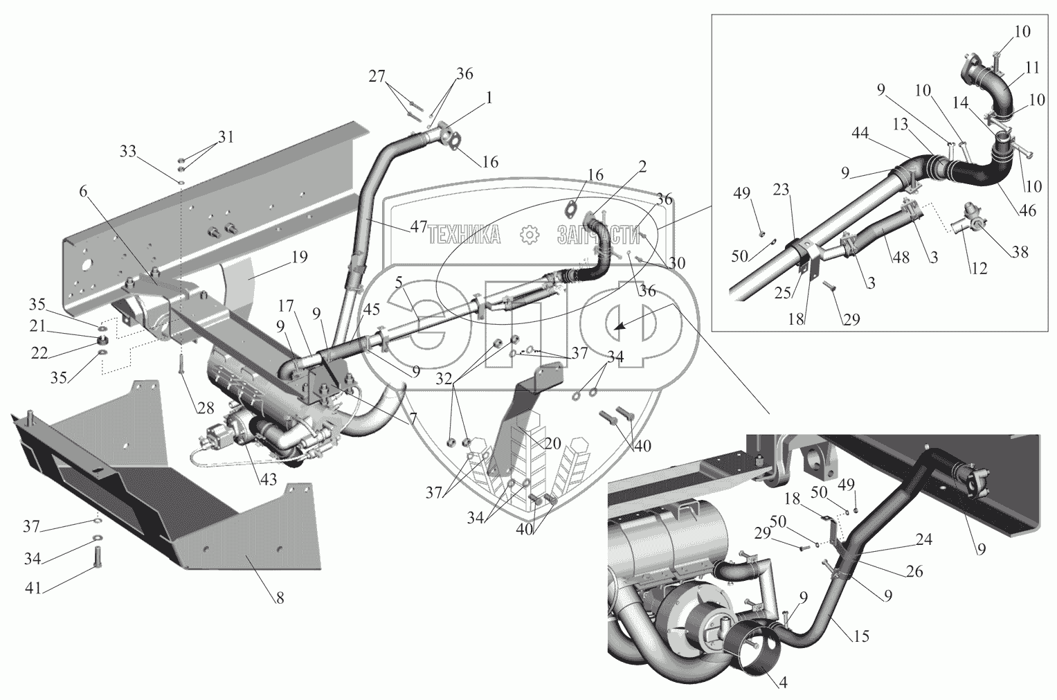 Каталог запасных частей к технике: МАЗ-530905. Установка подогревателя 641808-1015001