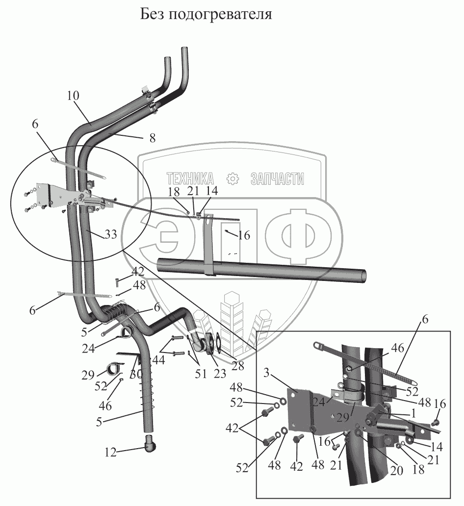 Каталог запасных частей к технике: МАЗ-530905. Установка шлангов отопителя 643008-810006