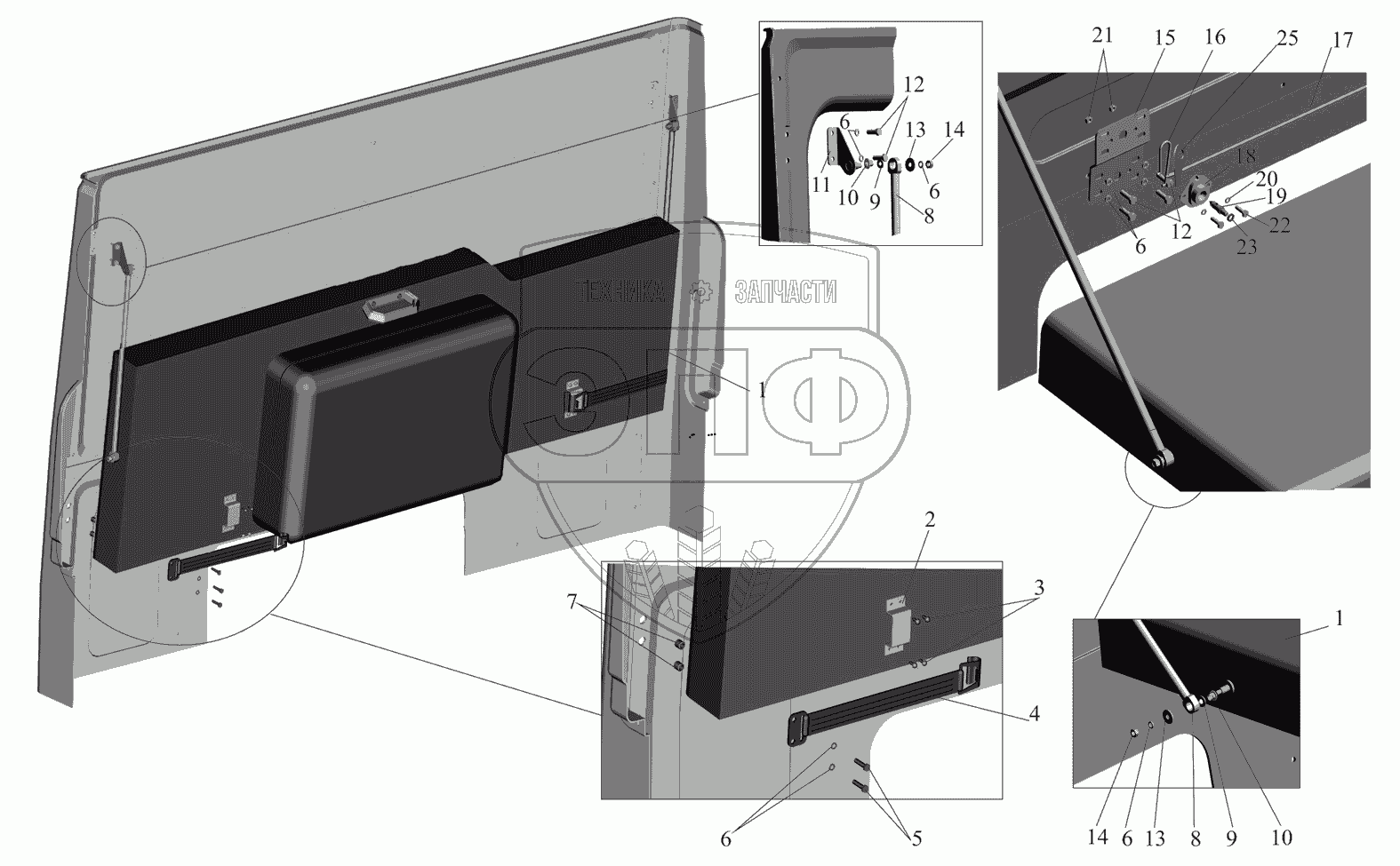 Каталог запасных частей к технике: МАЗ-530905. Установка спального места 4371-8200010