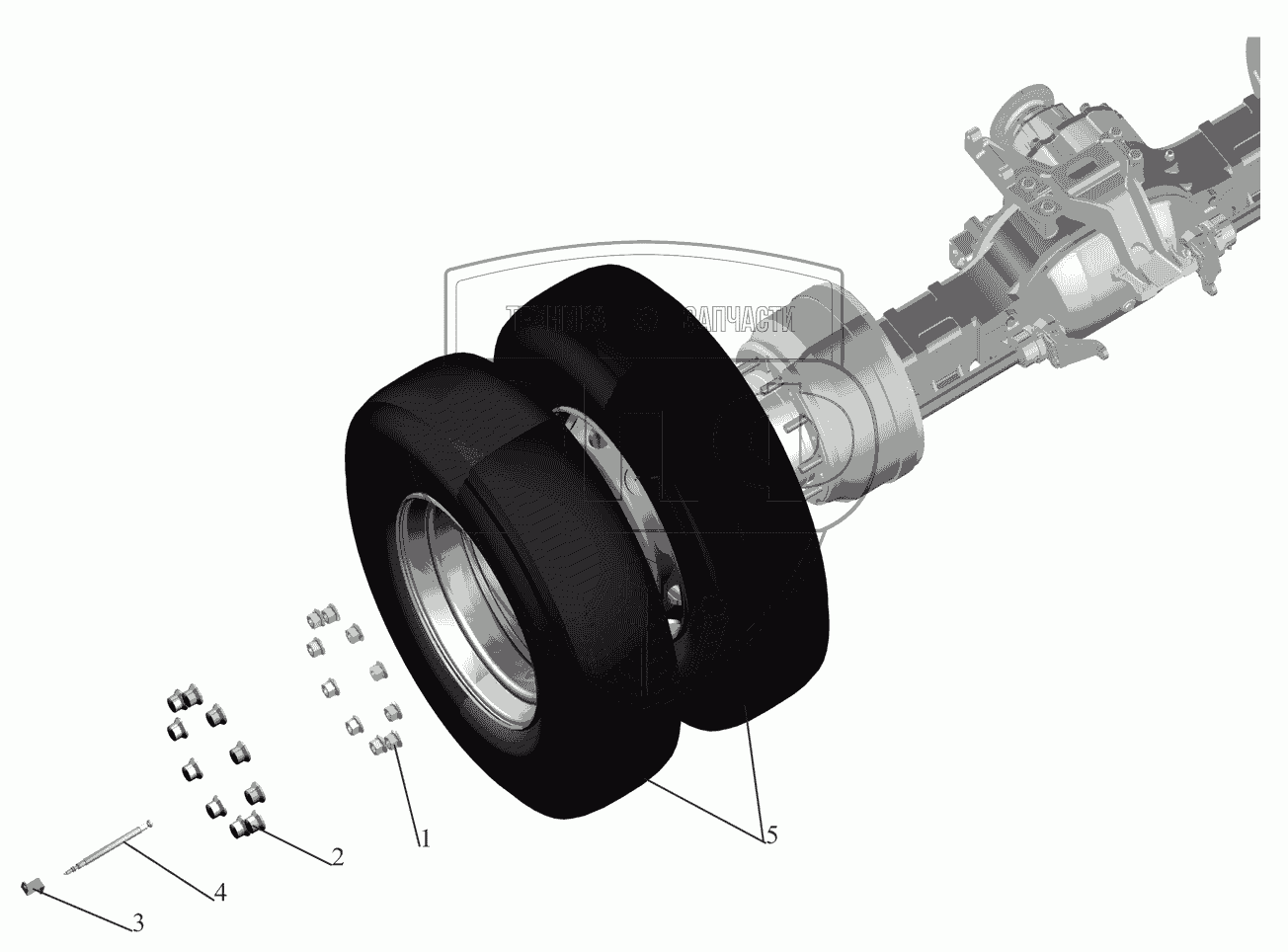 Каталог запасных частей к технике: МАЗ-530905. Установка задних колес