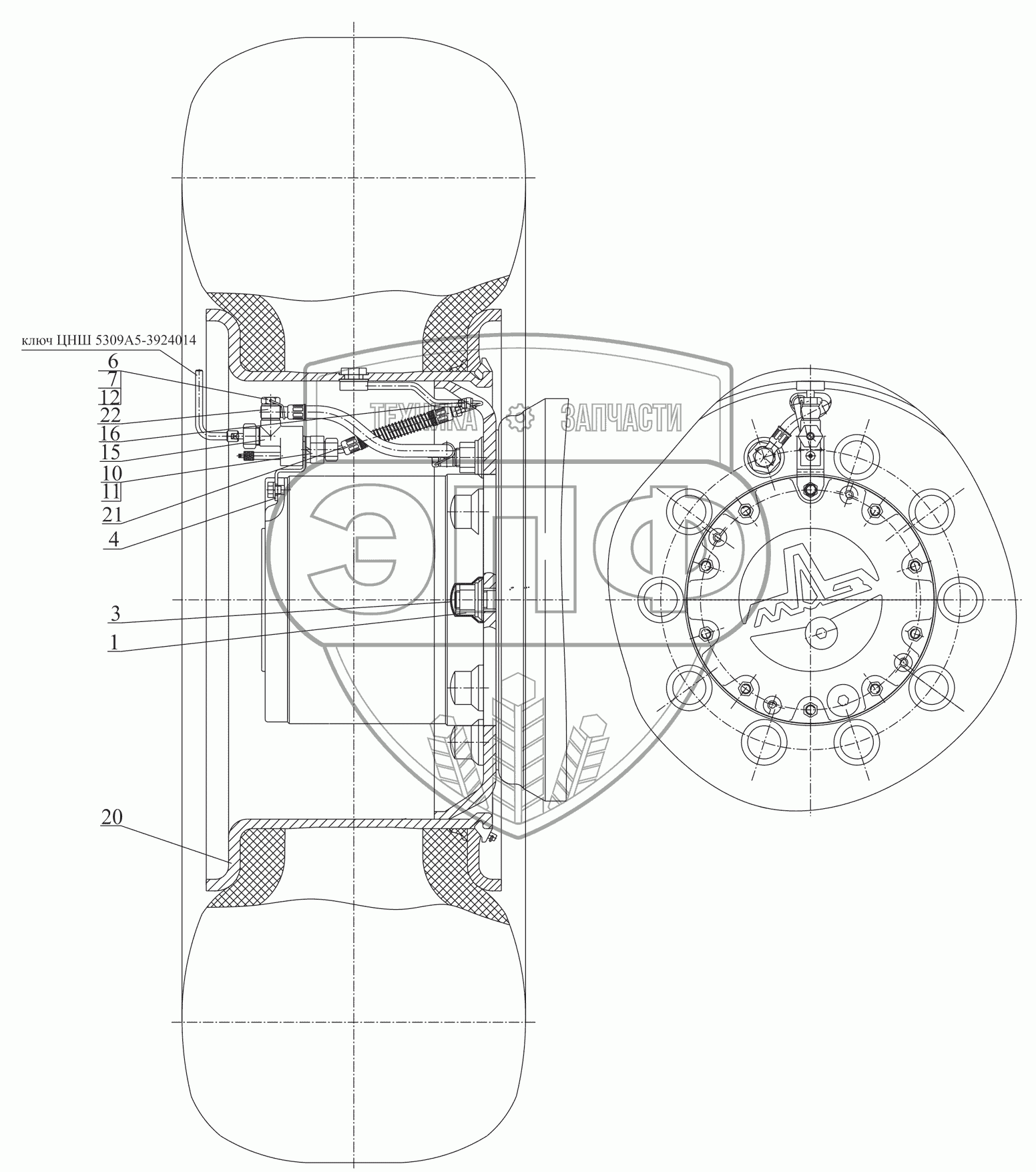 | 20 | 5309А3-3101011-010 | Колесо и шина | Нет на складе | |