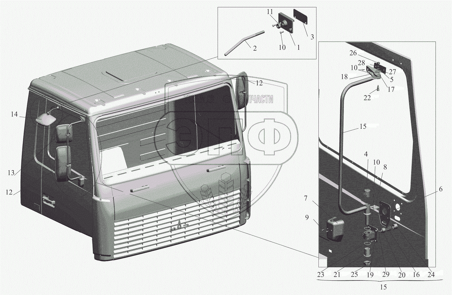 Каталог запасных частей к технике: МАЗ-530905. Установка зеркал 6430-8200005