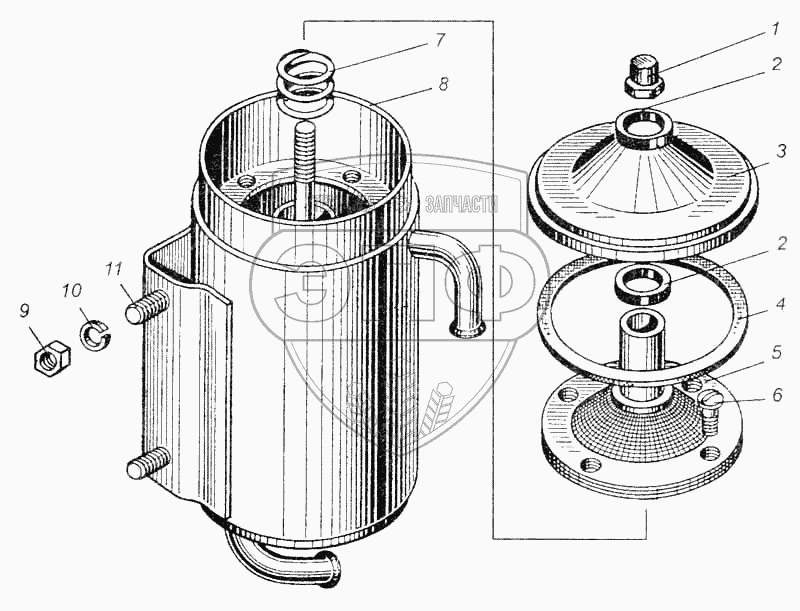 Каталог запасных частей к технике: МАЗ-5335. Бачок насоса гидроусилителя рулевого управления