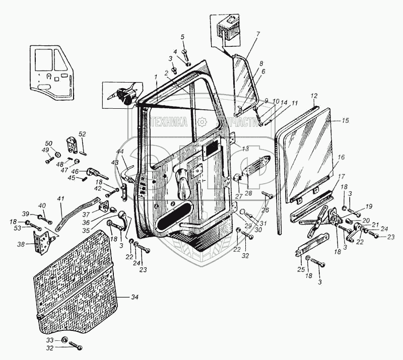 Каталог запасных частей к технике: МАЗ-5335. Дверь кабины