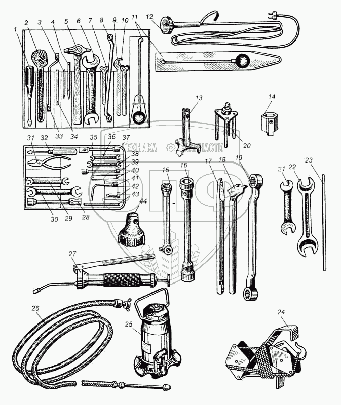 Каталог запасных частей к технике: МАЗ-5335. Инструмент и принадлежности
