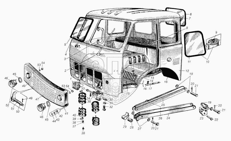 Каталог запасных частей к технике: МАЗ-5335. Каркас кабины и его крепление
