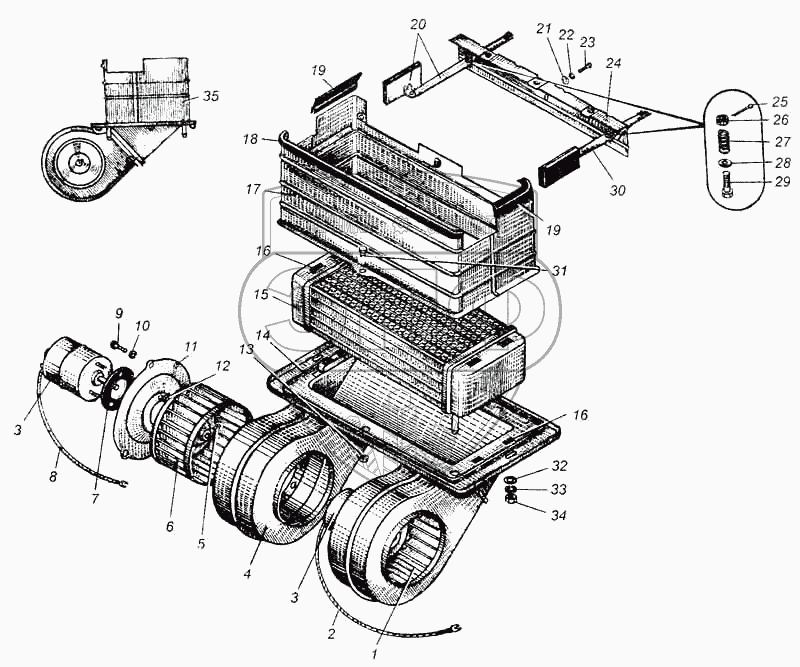 Каталог запасных частей к технике: МАЗ-5335. Отопитель кабины автомобиля МАЗ-504В