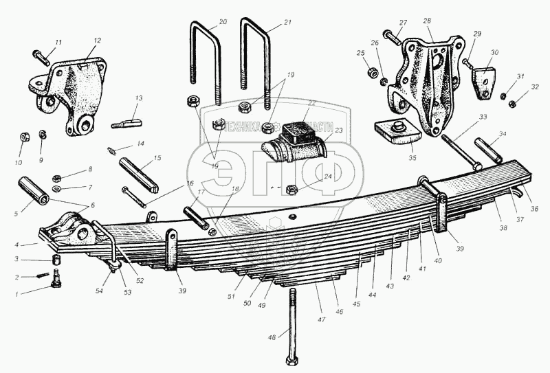 Каталог запасных частей к технике: МАЗ-5335. Рессора передняя