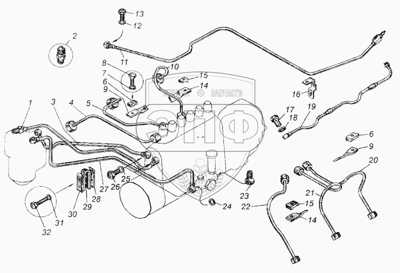 Каталог запасных частей к технике: МАЗ-5335. Топливные трубопроводы двигателя ЯМЗ-236