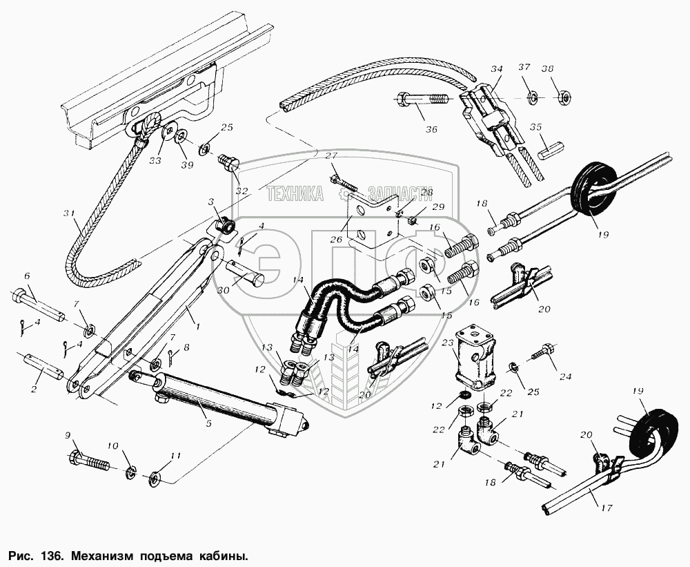 Каталог запасных частей к технике: МАЗ-53363. Механизм подъема кабины