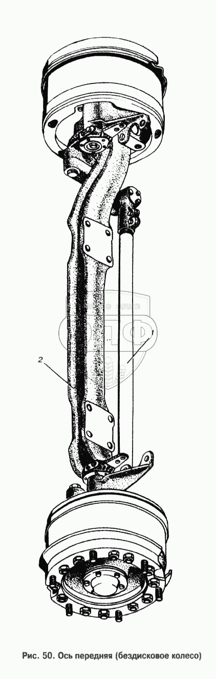 Каталог запасных частей к технике: МАЗ-53363. Ось передняя (бездисковое колесо)