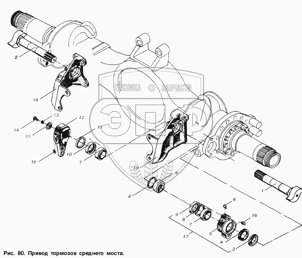 Каталог запасных частей к технике: МАЗ-53363. Привод тормозов среднего моста