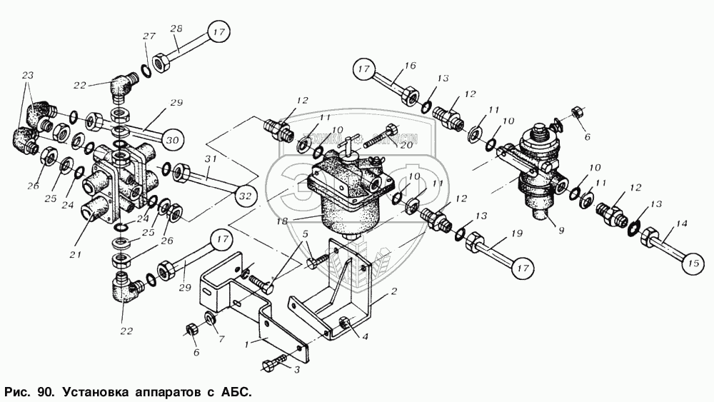 Каталог запасных частей к технике: МАЗ-53363. Установка аппаратов с АБС