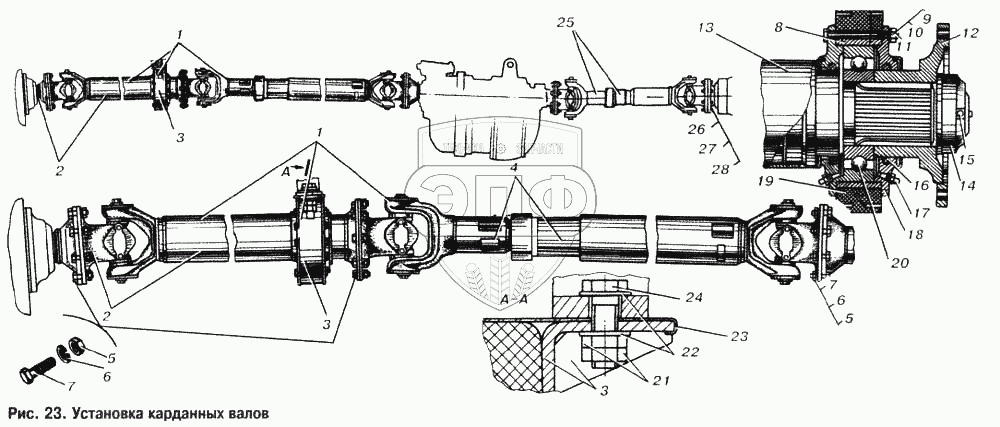 Каталог запасных частей к технике: МАЗ-53363. Установка карданных валов