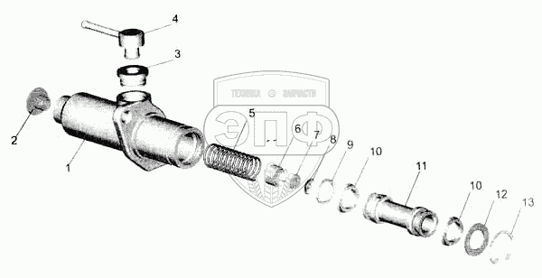 Каталог запасных частей к технике: МАЗ-5336. Цилиндр подпедальный 6430-1602510