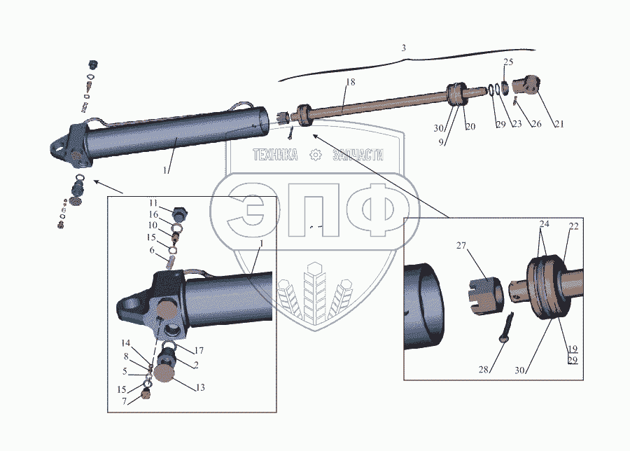 Каталог запасных частей к технике: МАЗ-533731. Гидроцилиндр 64221-5003010