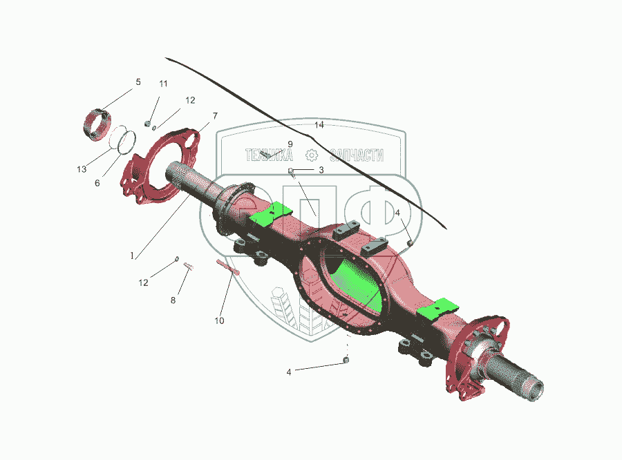 Каталог запасных частей к технике: МАЗ-533731. Мост задний. Картер моста