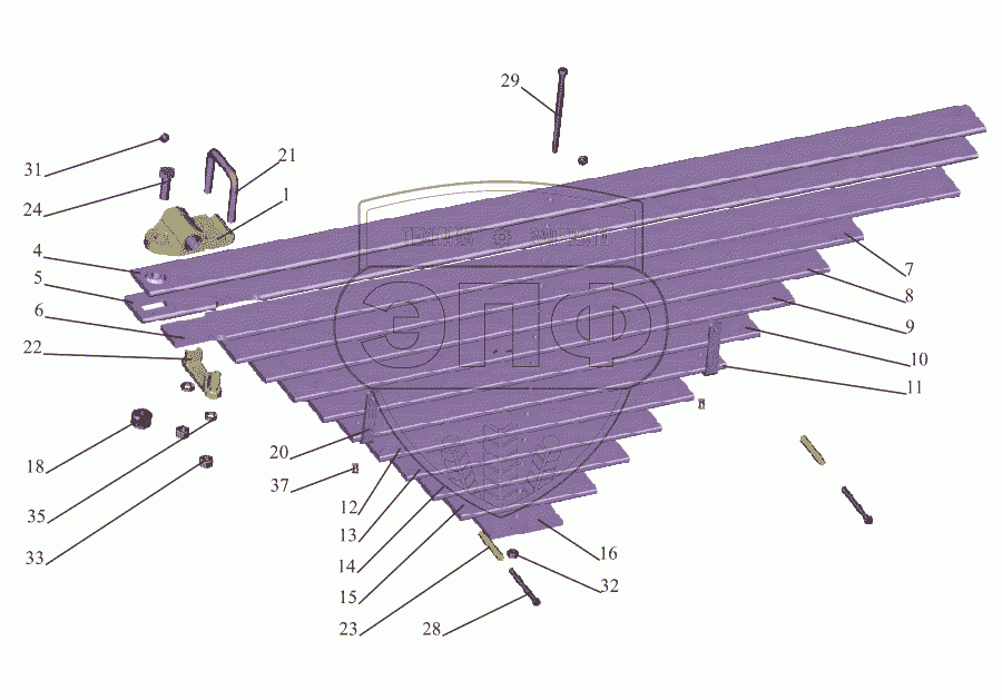 Каталог запасных частей к технике: МАЗ-533731. Рессора задняя 55514-2912012