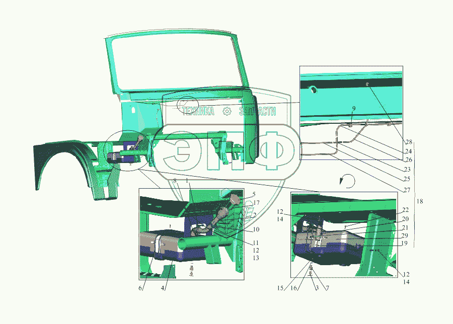 Каталог запасных частей к технике: МАЗ-533731. Установка омывателя 64221-5200008-01