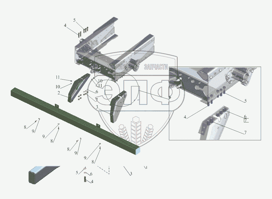 Каталог запасных частей к технике: МАЗ-533731. Установка заднего бампера