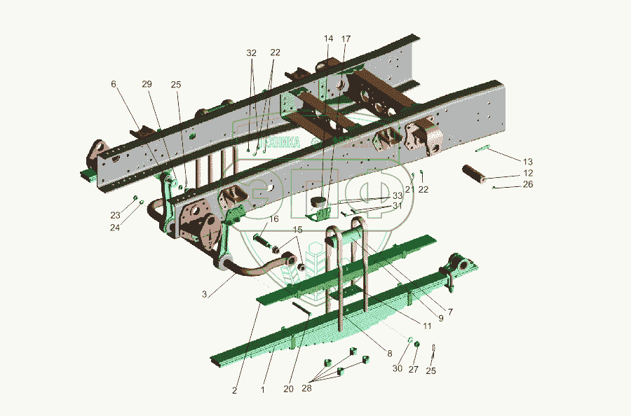 Каталог запасных частей к технике: МАЗ-533731. Установка задней подвески 55514-2900002