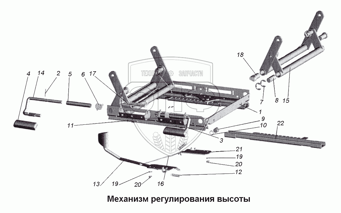 Каталог запасных частей к технике: МАЗ-533731. Механизм регулирования высоты
