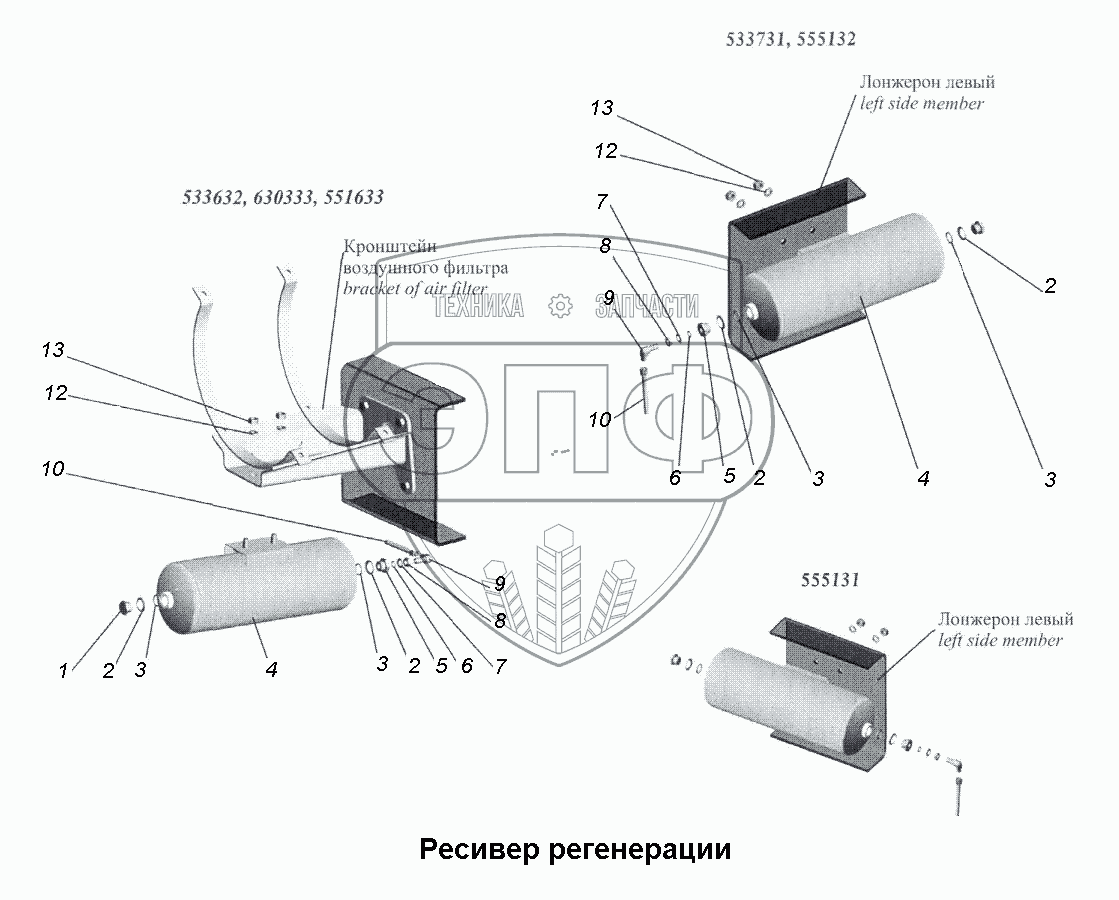 Каталог запасных частей к технике: МАЗ-533731. Ресивер регенерации